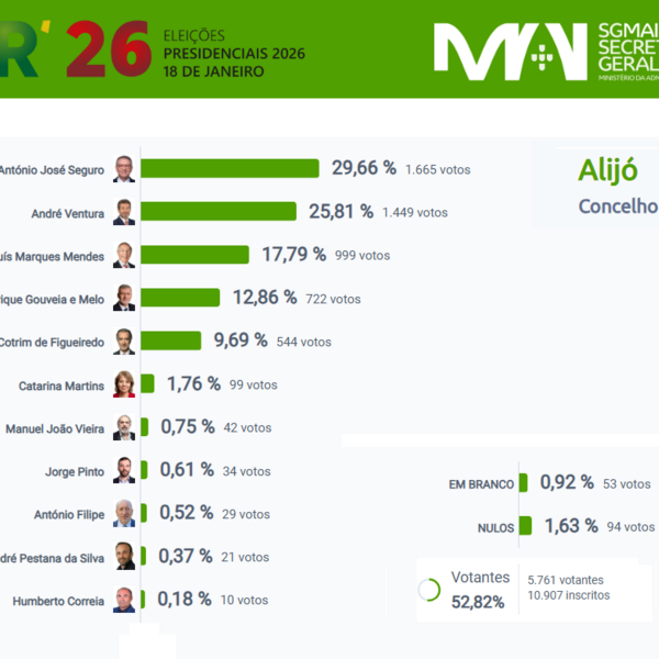 Decorreu ontem, 18 de janeiro, o ato eleitoral para eleição do próximo Presidente da República. No Concelho de Alijó, votaram 5.761 dos 10.907 eleitores inscritos. António José Seguro foi o mais ...19 Janeiro 2026 -