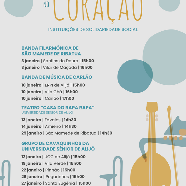 No próximo dia 3 de janeiro, arranca uma nova edição da iniciativa cultural e social “Levamos a Música no Coração”, promovida pelo Município de Alijó. Este projeto, que já conquistou o carinho da ...30 Dezembro 2025 -