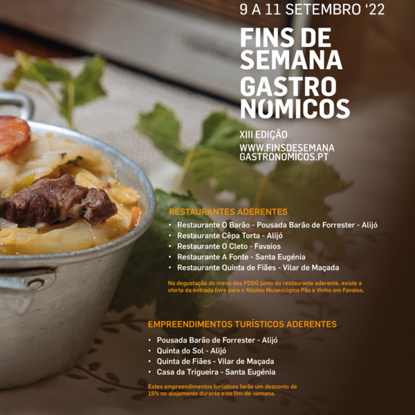 O Município de Alijó volta a promover a iniciativa “Fins-de-semana Gastronómicos”, de 9 a 11 de setembro, com um menu inteiramente dedicado às vindimas. O Bacalhau Frito, a Massa à Lavrador e as ...04 Setembro 2022