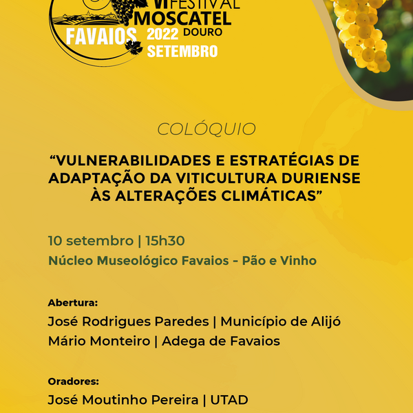 Terá lugar amanhã, dia 10 de setembro, a partir das 15h30, um Colóquio dedicado às “Vulnerabilidades e Estratégias de Adaptação da Viticultura Duriense às Alterações Climáticas”, que terá como ...08 Setembro 2022 -