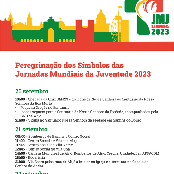 Os Símbolos da Jornada Mundial da Juventude iniciam hoje a sua peregrinação pelo Concelho de Alijó. Os trabalhadores do Município de Alijó associam-se a esta iniciativa e recebem os Símbolos - a ...19 Setembro 2022 -