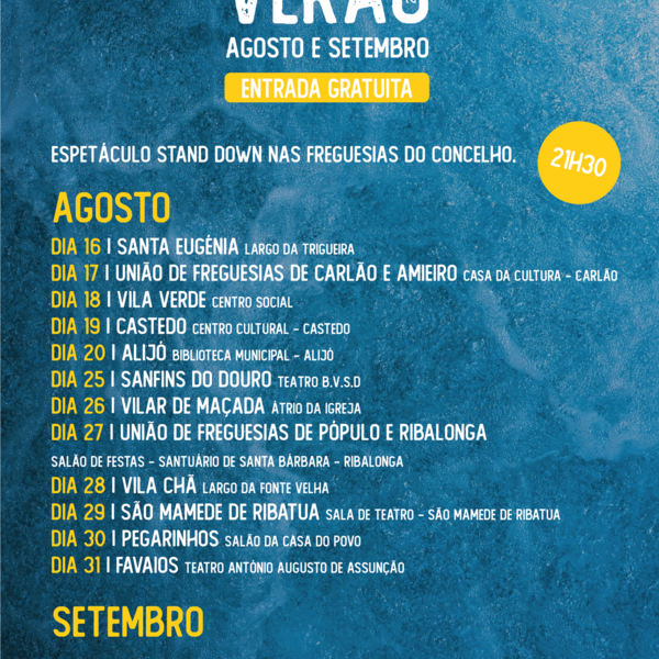 O Município de Alijó vai levar “Teatro no Verão” a todas as freguesias do Concelho. A iniciativa cultural arranca a 16 de agosto, em Santa Eugénia, e termina a 5 de setembro, no Pinhão. Ao todo, ...16 Agosto 2022