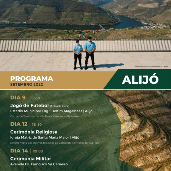 O Comando Territorial da Guarda Nacional Republicana (GNR) de Vila Real vai celebrar o seu 13º aniversário em Alijó. O momento alto destas comemorações - a Cerimónia Militar - terá lugar no dia 14 ...01 Setembro 2022 -